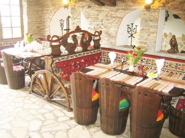 The restaurant has traditional Bulgarian atmosphere and offers a variety of typical Bulgarian dishes, with a good collection of wine and rakia.