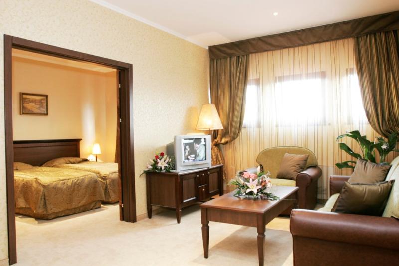 Yantra Grand Hotel offers accommodation in 71 elegant apartments and rooms, part of which with a view to Tsarevets Fortress. All of them are furnished with a double bed or twin beds, minibar, cable TV, high-speed Internet (in the rooms), individual control air conditioning, telephone, bathroom with bathtub or shower cabin, WC, hair dryer and telephone.