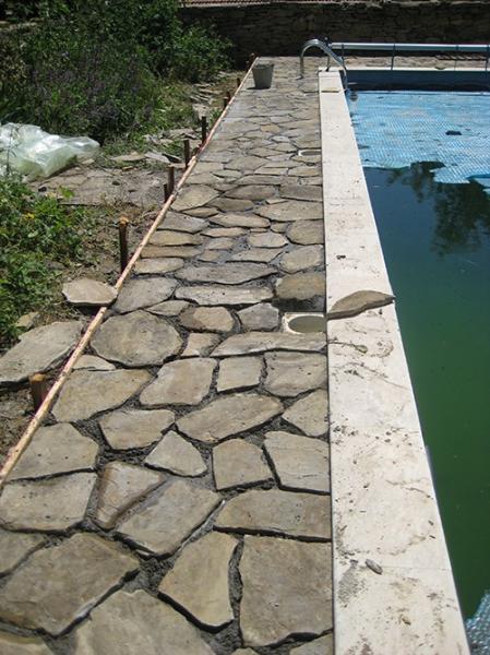 Building of a brand new retaining wall after the old one collapsed. It came with the building of a new garden gate. Renovation of the patio around the pool after the ground settled and damaged it.