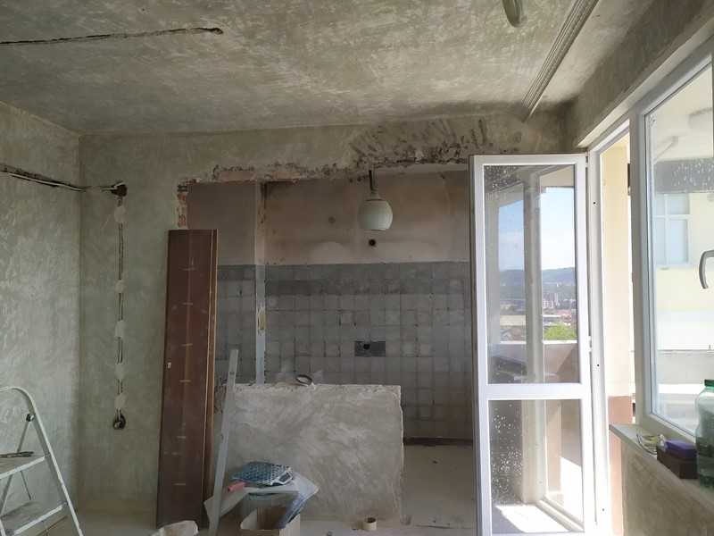 · The scope was to clear it out, reconfigure the space by making the separate kitchen, dining and living spaces open plan, design and fit upgraded kitchen and appliances, design and fit upgraded bathrooms, renew kitchen and bathroom tiling, replace all windows, install new electrics, install air conditioning, fit new doors, replaster, renew woodwork, repair and polish old parquet flooring, plaster and decorate throughout, supply furniture and make it ready for the high end rental market. · Fixed price for: Demolition, create new openings and reconfigure the space, New electrics throughout , plumbing including fitting bathroom furniture, Tiling of kitchen and bathrooms, Remove old wall coat (wienerweiss, which is fine-ground lime), re plastering throughout, Painting throughout, Supply and replace all windows with new PVC ones, Tile bathrooms, Install air conditioning, Sanding terrazzo floors, Sand, repair and varnish of parquet floors, Supply and fit skirting boards and door facings, Supply and install new main and interior doors, Create projects for new bathrooms and kitchen for client approval, install bathroom furniture (budgets given for supply new kitchen and bathroom furniture) · Cost plus for: Supply tiles, supply bathroom furniture, supply and kitchen and white goods all to client’s choice, new high security external door to clients choice, air conditioning units to clients choice, source and supply furniture to clients choice. · Hourly charge for: Initial clearing out and final cleaning · Project was in proximity of the old part of Veliko Tarnovo; it was started in the middle of 2020 and finished early 2021. |