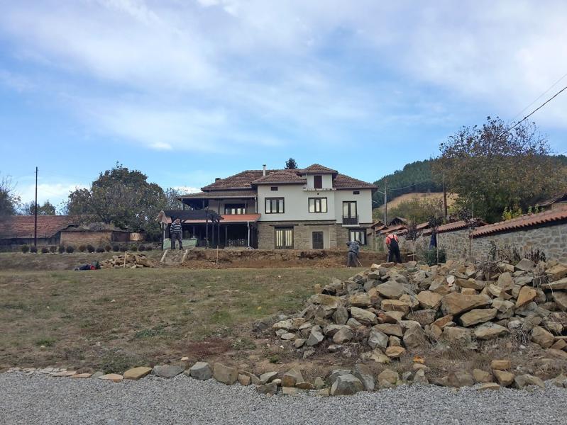 The making of a small stone wall in a village near the town of Pavlikeni.